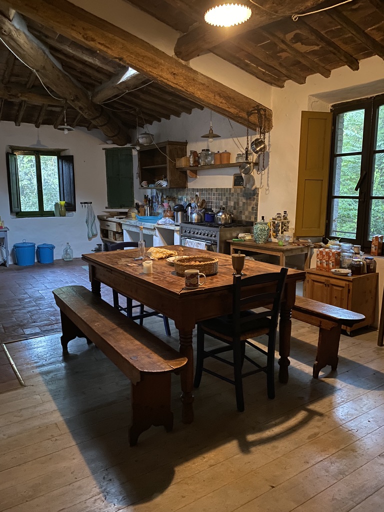 Bruna’s mill it is an off-grid old mill which she converted into a farm house. There is no wifi or phone signal; there is a river; she grows vegetables and flowers there; in one of the bedrooms the ceiling is hand painted with golden stars… it’s pretty magic. We will eat together around a big wooden family kitchen table, walk up the hills and watch the sunset. You’ll breathe deeply here. You can see the mill’s website here.